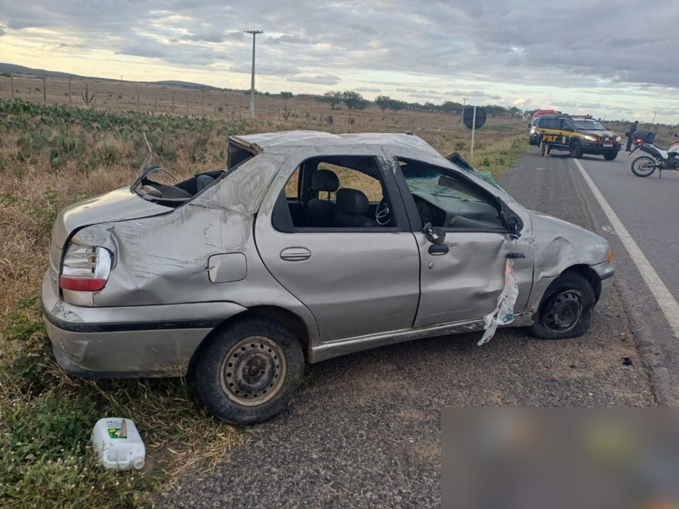 No interior do veículo estavam um casal e o neto deles de idade não informada. — Foto: Reprodução/PRF