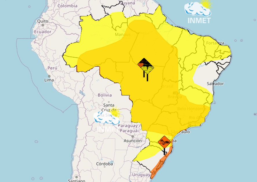 Alertas metereológicos do Inmet nesta segunda-feira — Foto: Inmet