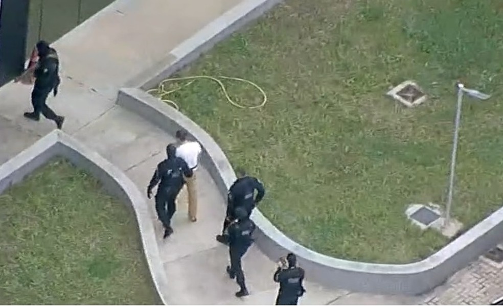 Imagem aérea mostra Vorcaro chegando ao IML — Foto: Reprodução/GloboNews
